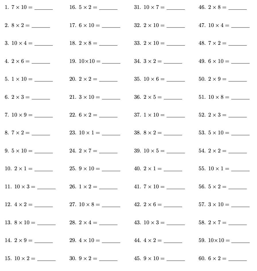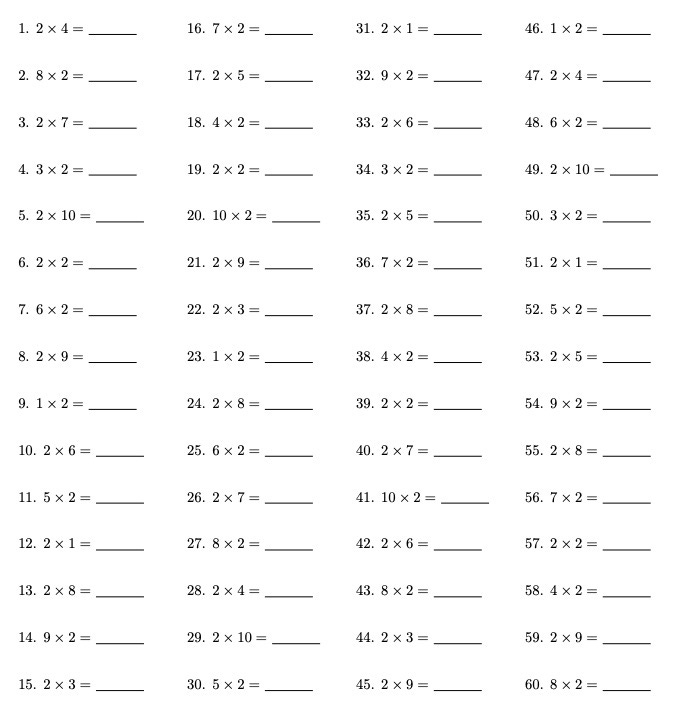 It's all 2s. In general, my students know at least some of their 2s. If yours don't know any of their 2s times tables, you might want to start by breaking things down even more. But this worked for my students. We started with a few rounds of practice with 2s this until students got more fluent and confident.